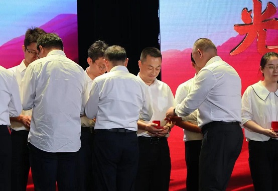 活动的最后,由宇文家胜同志带领新党员进行入党宣誓,并为新党员授予党徽,公司两名新党员受邀参加了仪式。