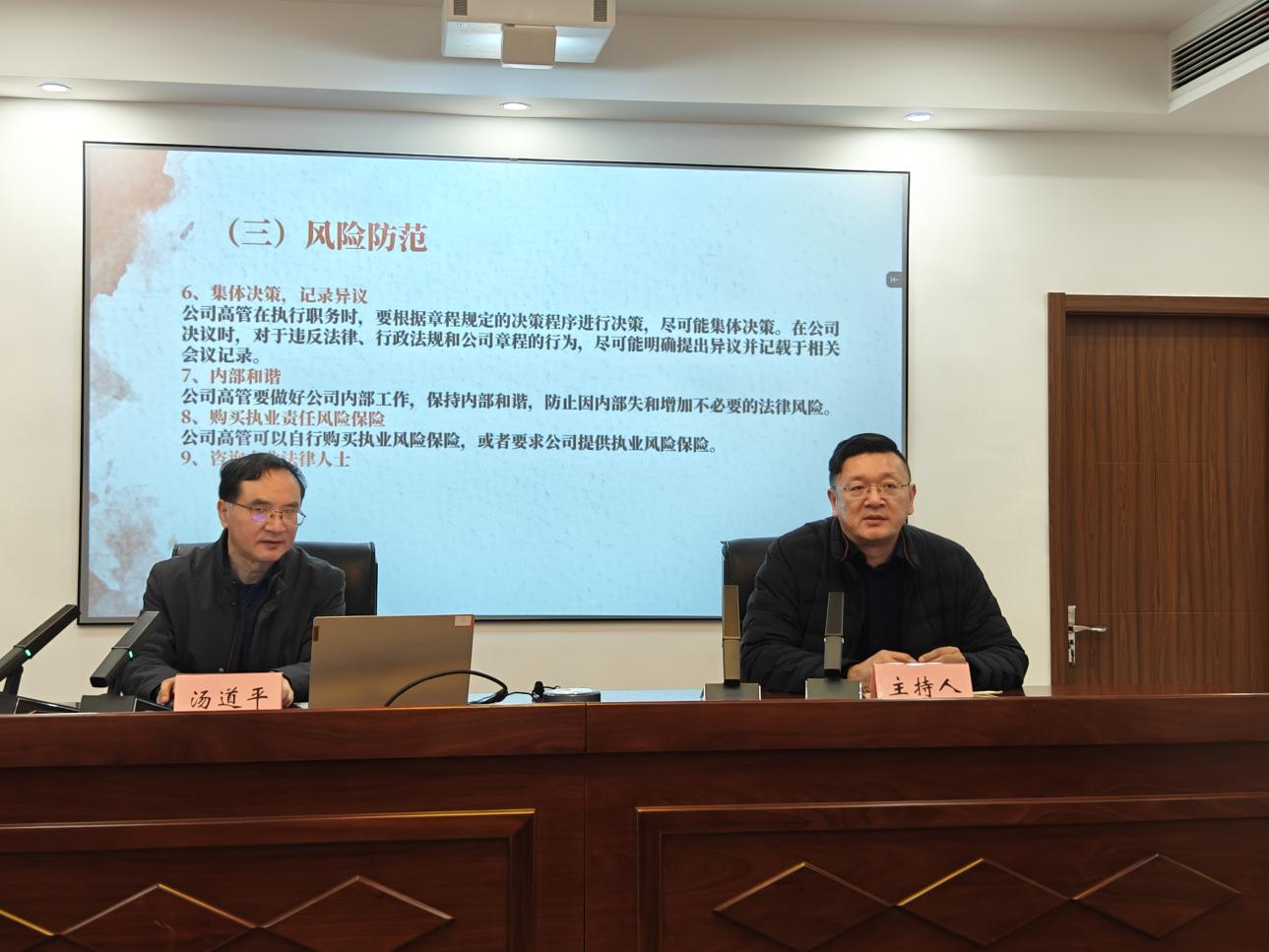 汤道平律师着重向大家讲解了合规概念及体系构建,招投标、劳动用工、对外投资、数据等重要领域常见风险,中高层人员风险防范等知识。在汤道平律师的讲解下,参会员工对合规管理的重要性及建立完整的合规体系有了深刻的认识。
