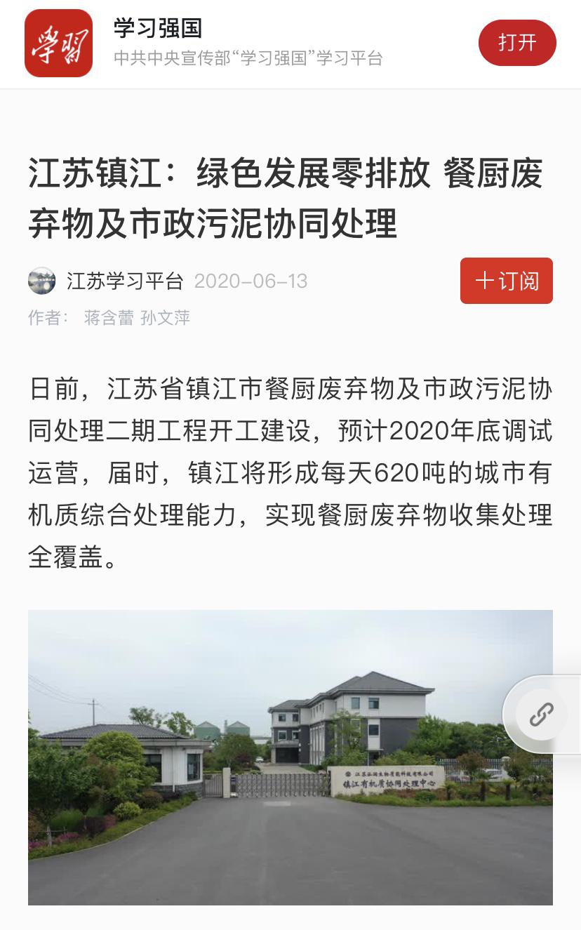 日前,江苏省镇江市餐厨废弃物及市政污泥协同处理二期工程开工建设,预计2020年底调试运营,届时,镇江将形成每天620吨的城市有机质综合处理能力,实现餐厨废弃物收集处理全覆盖。