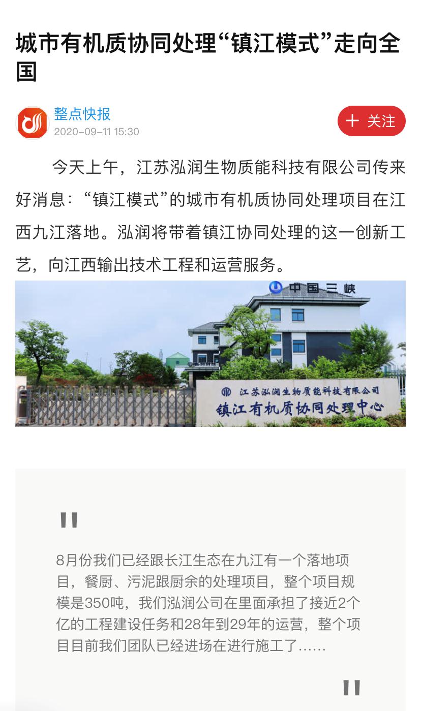 今天上午,明博app官网传来好消息:“镇江模式”的城市有机质协同处理项目在江西九江落地。泓润将带着镇江协同处理的这一创新工艺,向江西输出技术工程和运营服务。